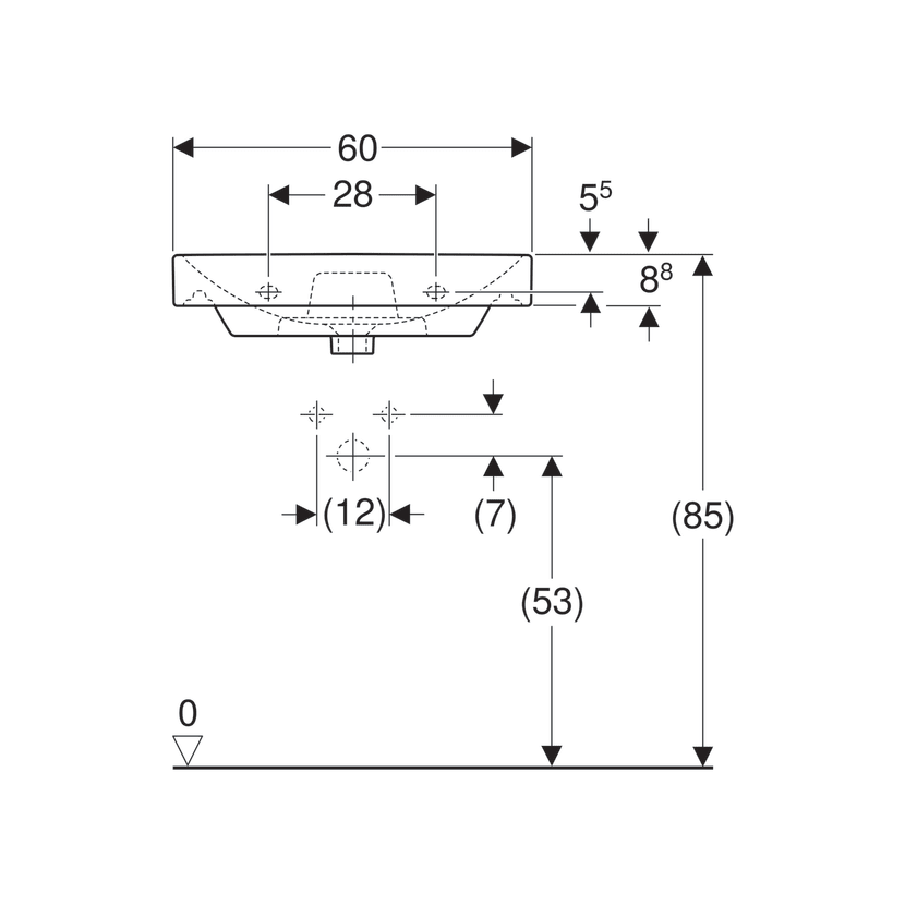GEBERIT Smyle Square umyvadlo 60x48cm bílé 500.229.01.1
