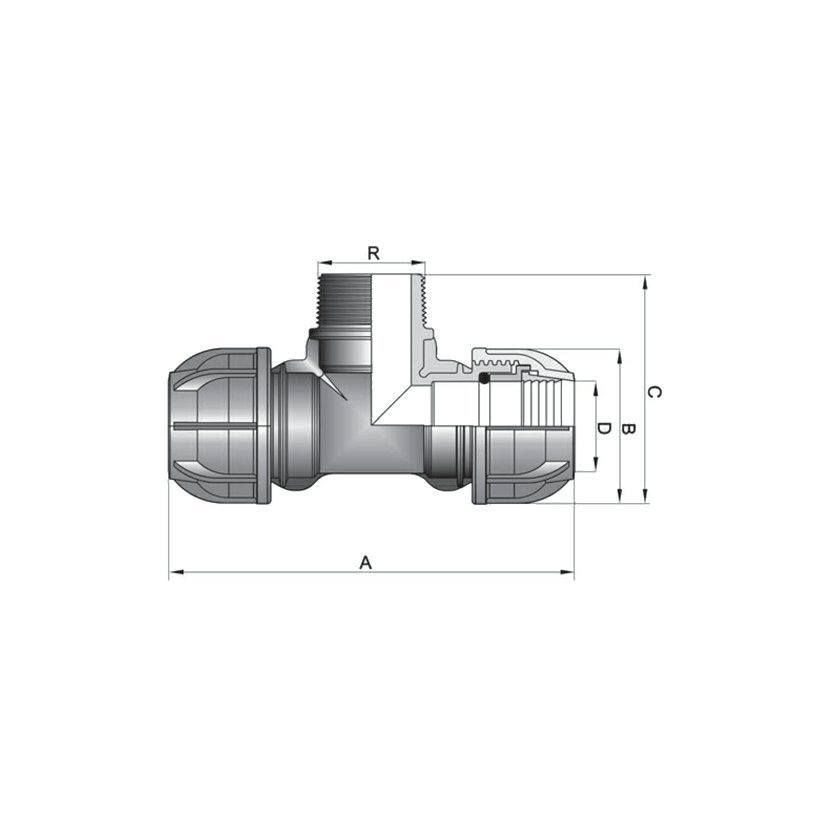 Parametry produktu GEBO PLAST PTA svěrný T-kus 40x 5/4" x40 s vnějším závitem