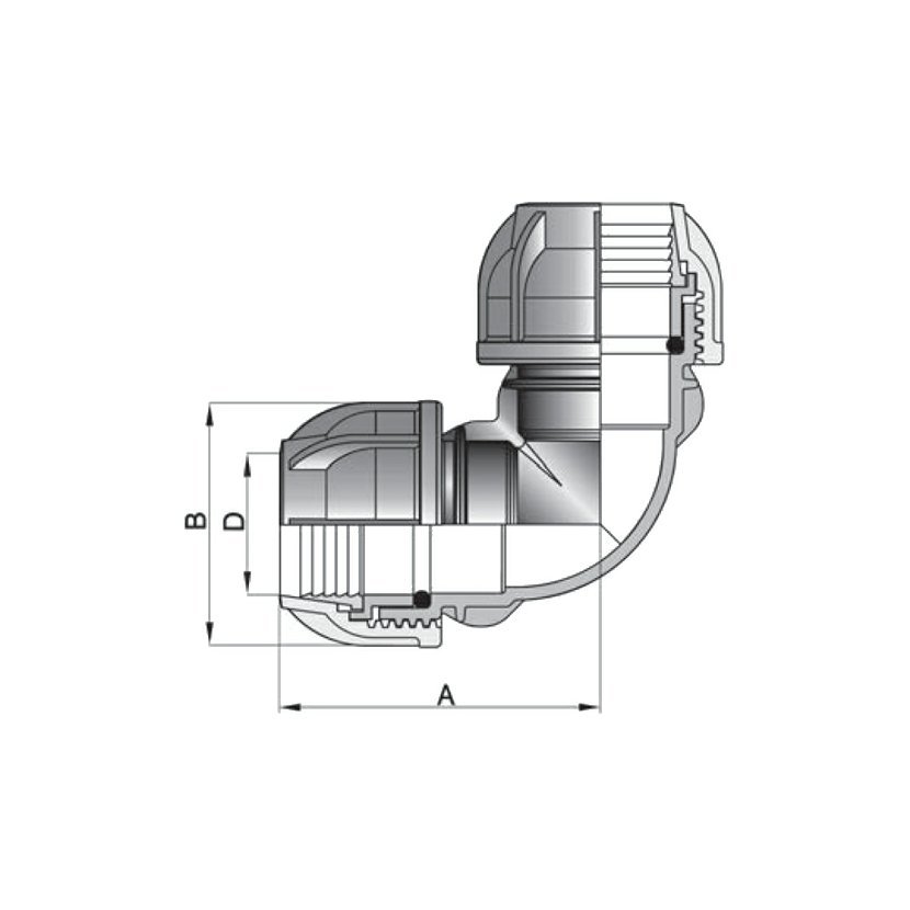 Materiály: - Těleso: Kopolymer (PP-B), odolný proti UV záření - Stahovací kroužek: Polypropylen - Kuželová matice: Polypropylen, odolný proti UV záření - Svěrací kroužek: Polyacetal Resin (POM) - O-kroužek: NBR pro různé druhy použití - Zesilovací kroužek: Ušlechtilá ocel, AISI 430, pro vnitřní závit 1 1/4" – 4"