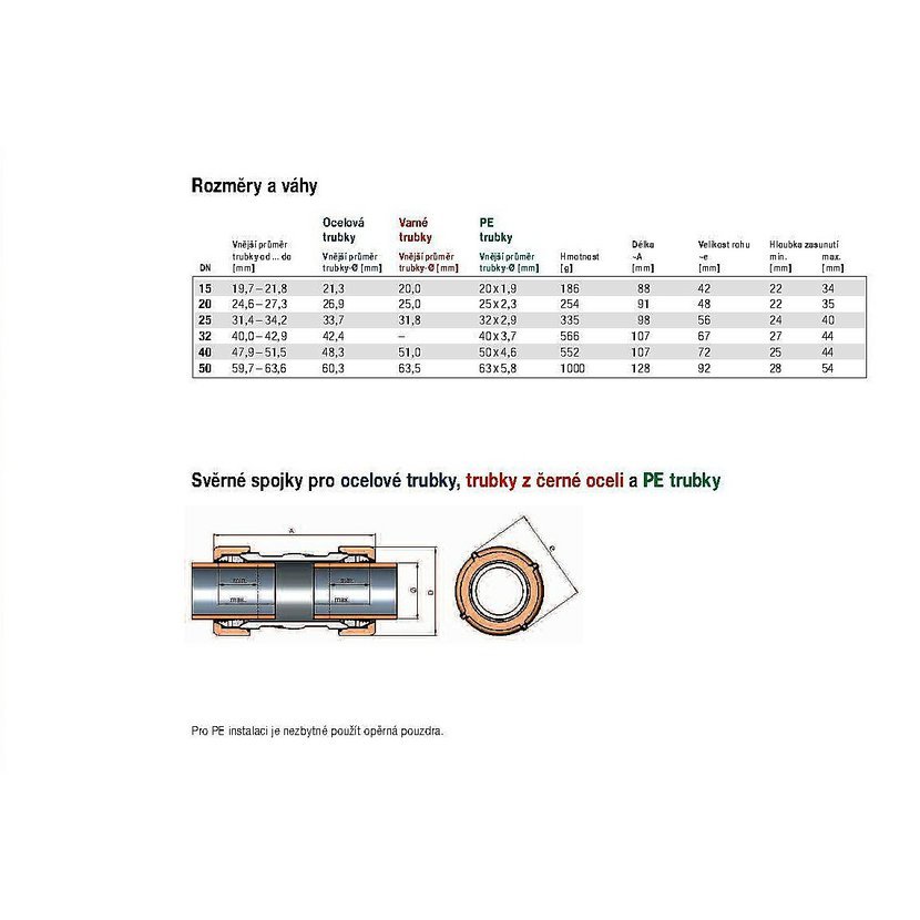Parametry produktu  GEBO QO svěrná spojka vnitřní DN 15