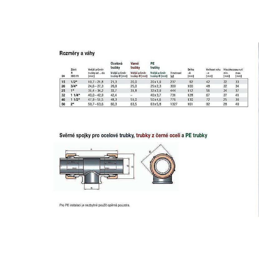 Parametry produktu GEBO QT svěrná spojka T-kus DN 50 x 2"