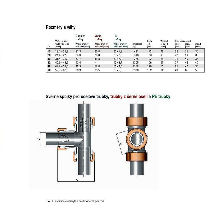 Parametry produktu GEBO QTO svěrná spojka T-kus DN 25