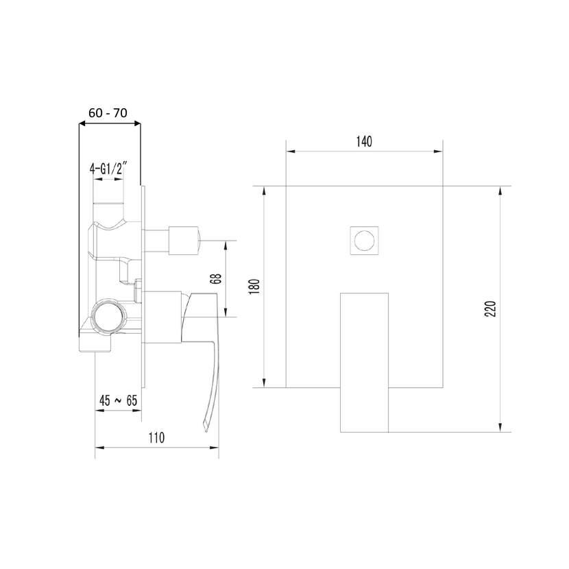 Parametry produktu GINKO podomítková sprchová baterie, 2 výstupy, černá mat
