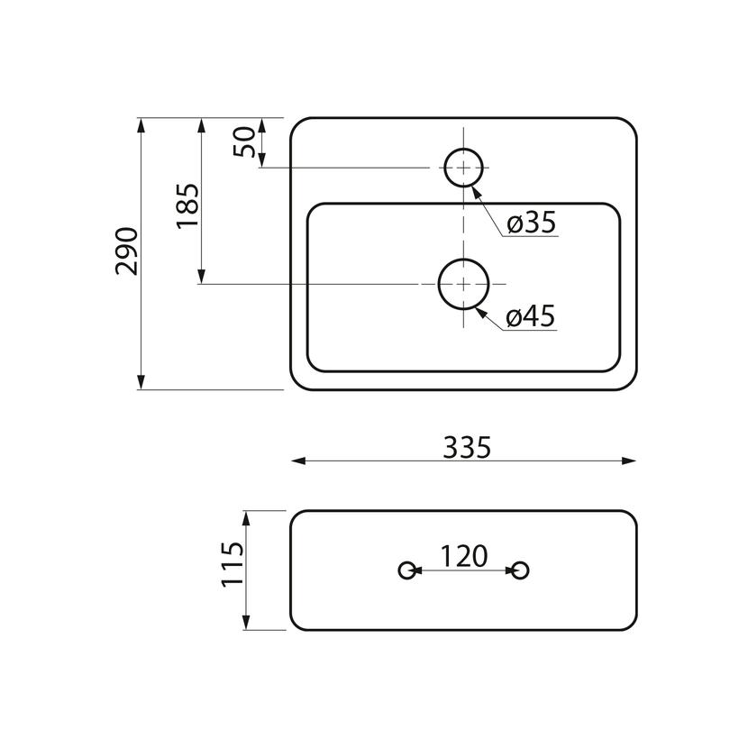 Parametry produktu GIULIA keramické umývátko 33,5x29cm, černá mat