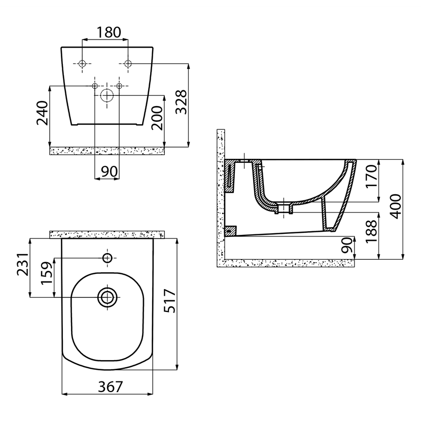 Parametry produktu  GLANC bidet závěsný, 37x51,5 cm, bílá