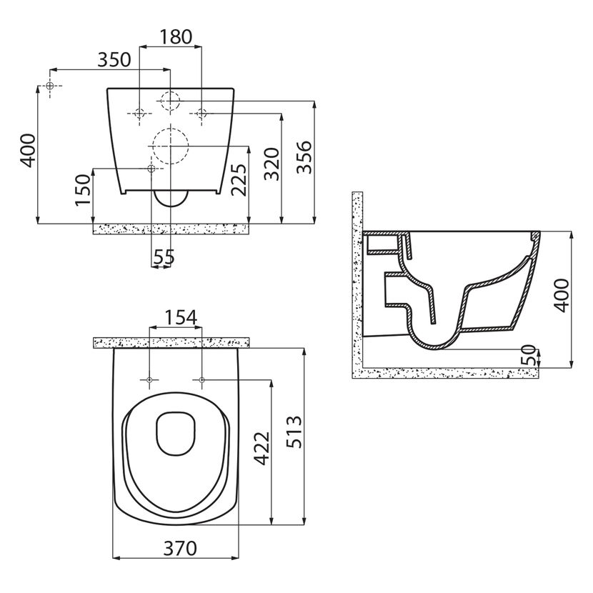 Parametry produktu  GLANC závěsná WC mísa, Rimless, 37x51,5cm, bílá