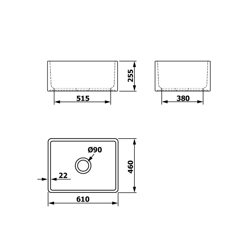 Parametry produktu  GLORY keramický dřez 61x46cm, bílá