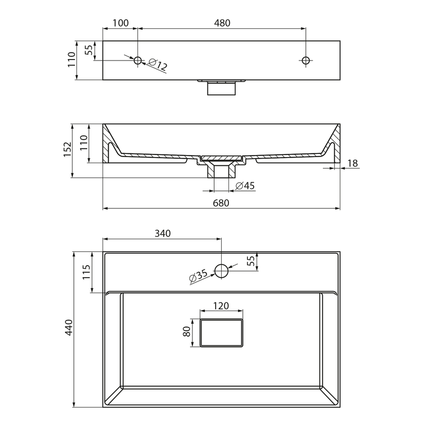 Parametry produktu GODIVA umyvadlo, litý mramor, 68x44cm, bílá
