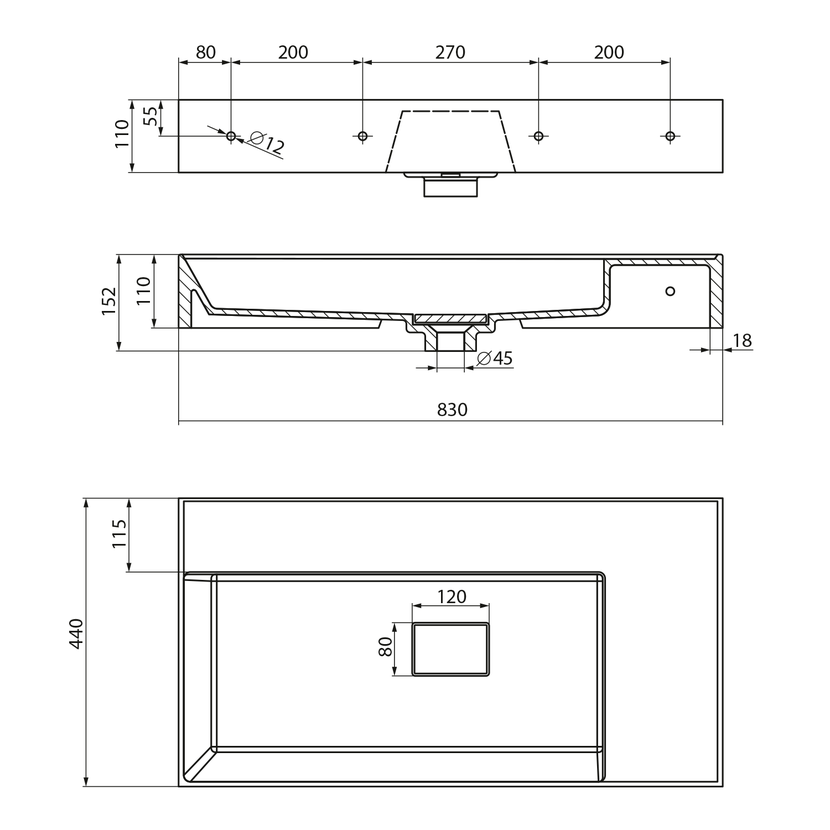 Parametry produktu  GODIVA umyvadlo, litý mramor, 83x44cm, bez otvoru, bílá