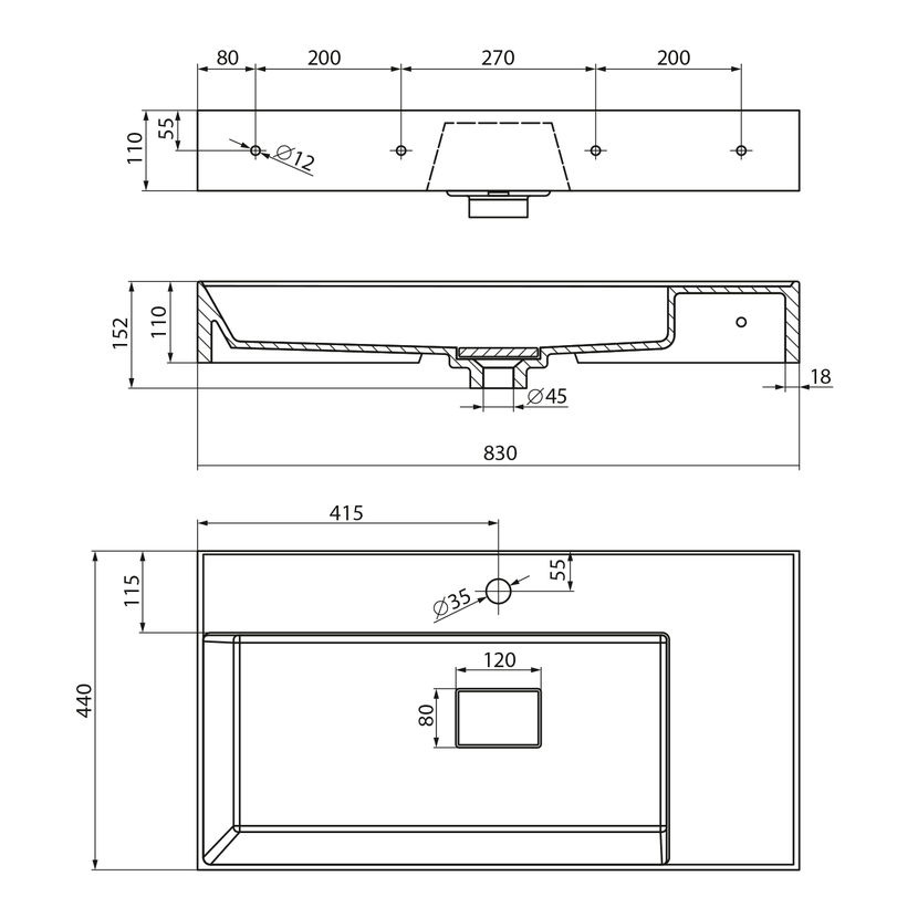 Parametry produktu  GODIVA umyvadlo, litý mramor, 83x44cm, bílá