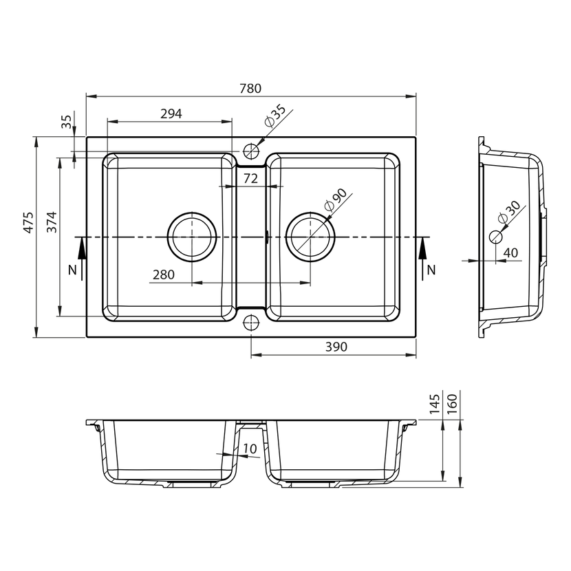 Parametry produktu  Granitový dvojdřez, 78x47,5cm, bílá