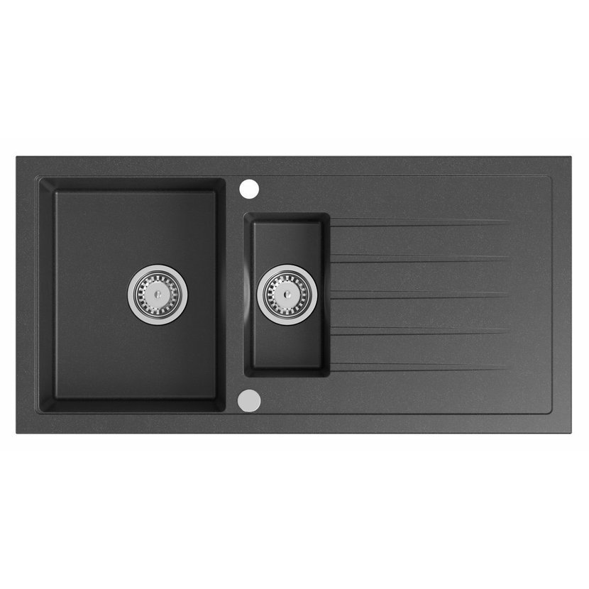 Granitový vestavný dřez s odkapem a vaničkou, 100x50cm, černá