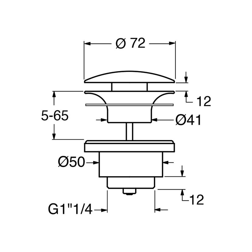 Parametry produktu  GSI umyvadlová výpust 5/4“, click-clack, keramická zátka, 5-65mm, černá mat
