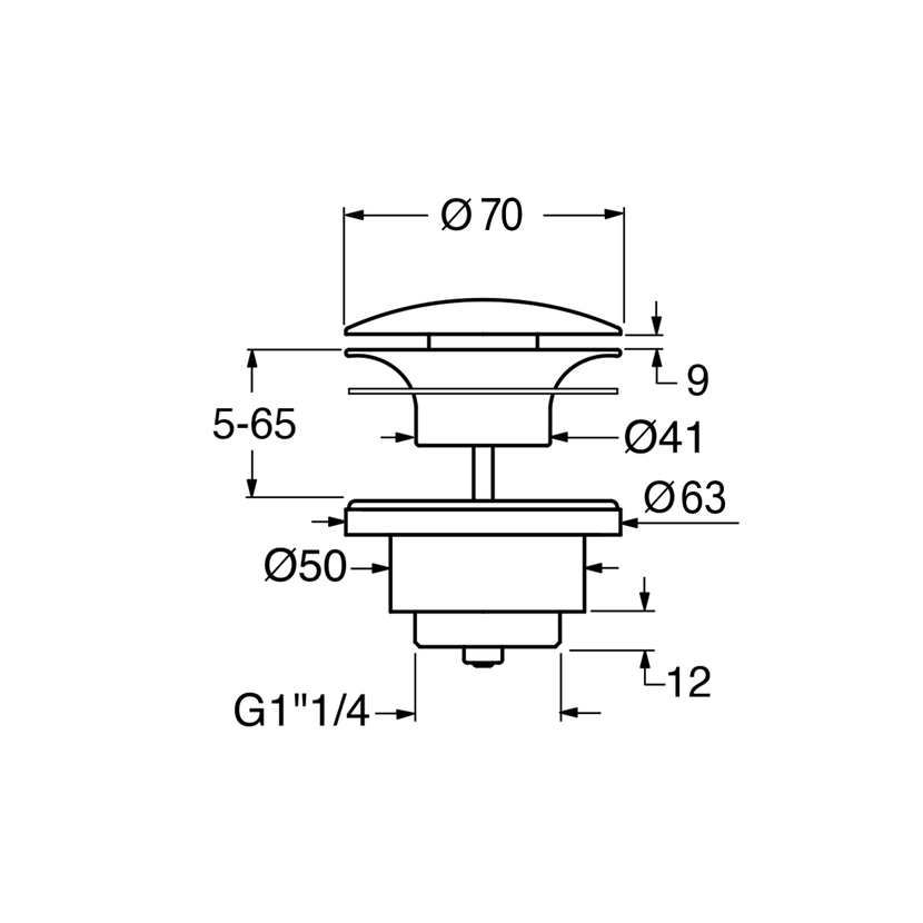 Parametry produktu  GSI umyvadlová výpust 5/4“, neuzavíratelná, keramická zátka, 5-65mm, blush mat
