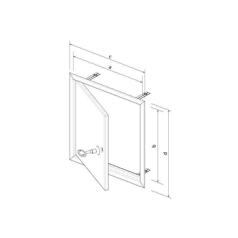 Použití: Revizní dvířka se zámkem do svislých i vodorovných (ne pochozích) stavebních konstrukcí. Jednoduchá montáž, otevírání vpravo i vlevo. Zámek se otevírá čtyřhraným trnovým klíčem 7 x 7 mm, který lze objednat zvlášť pod obj. č. N5025.