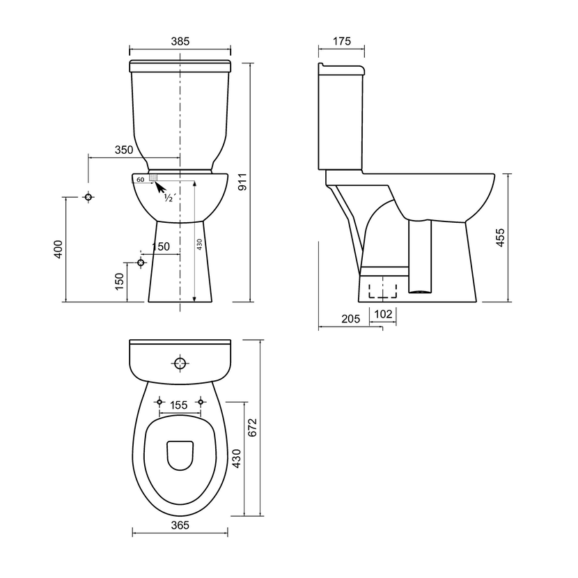 Parametry produktu  HANDICAP WC mísa kombi, zvýšený sedák, spodní odpad, 36,5x67,2cm, bílá