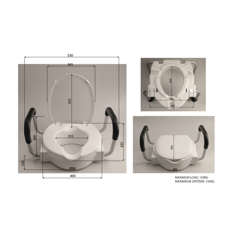 Parametry produktu  HANDICAP WC sedátko zvýšené 10cm, s madly, bílá