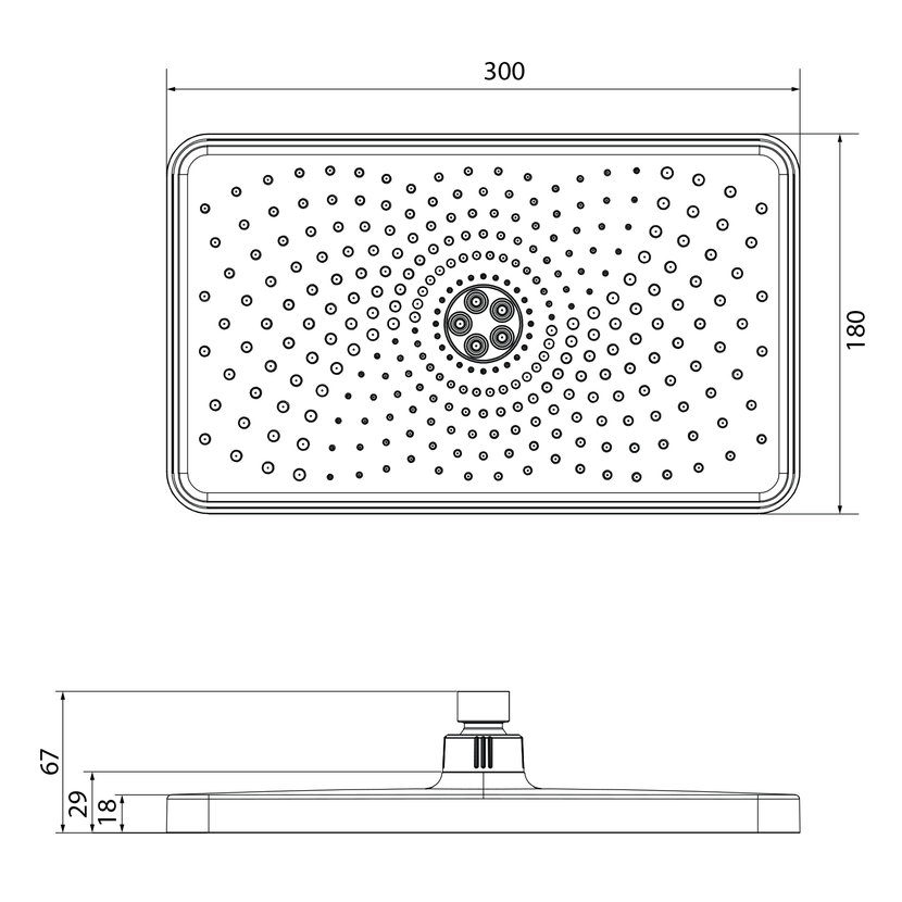 Parametry produktu  Hlavová sprcha, 300x180mm, silikon trysky, ABS/černá mat