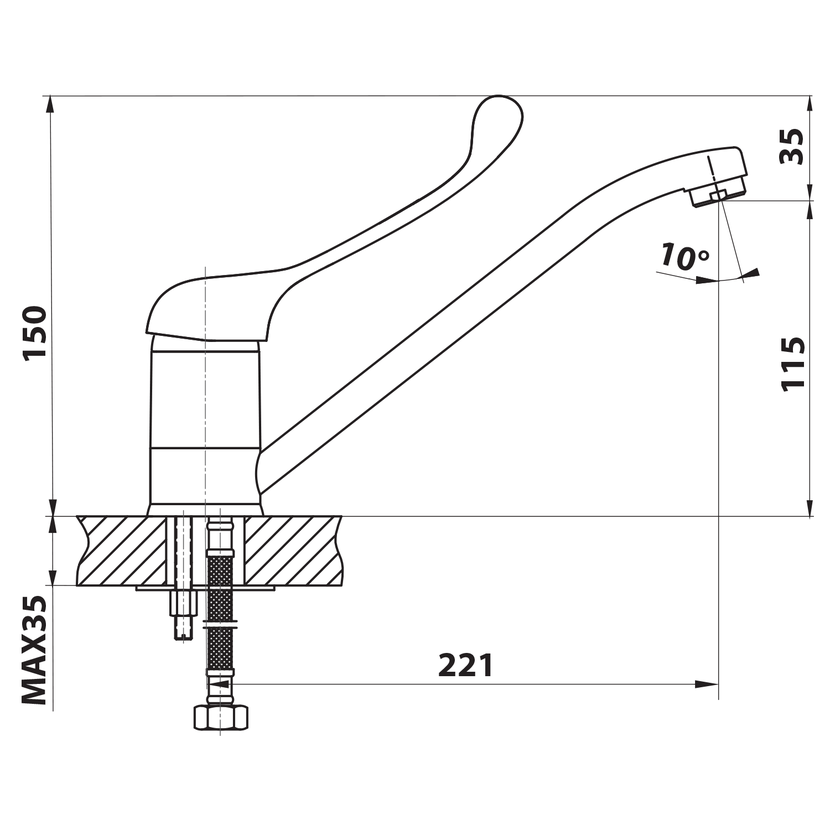 Parametry produktu HOFFER stojánková dřezová baterie, lékařská páka, 221mm, chrom