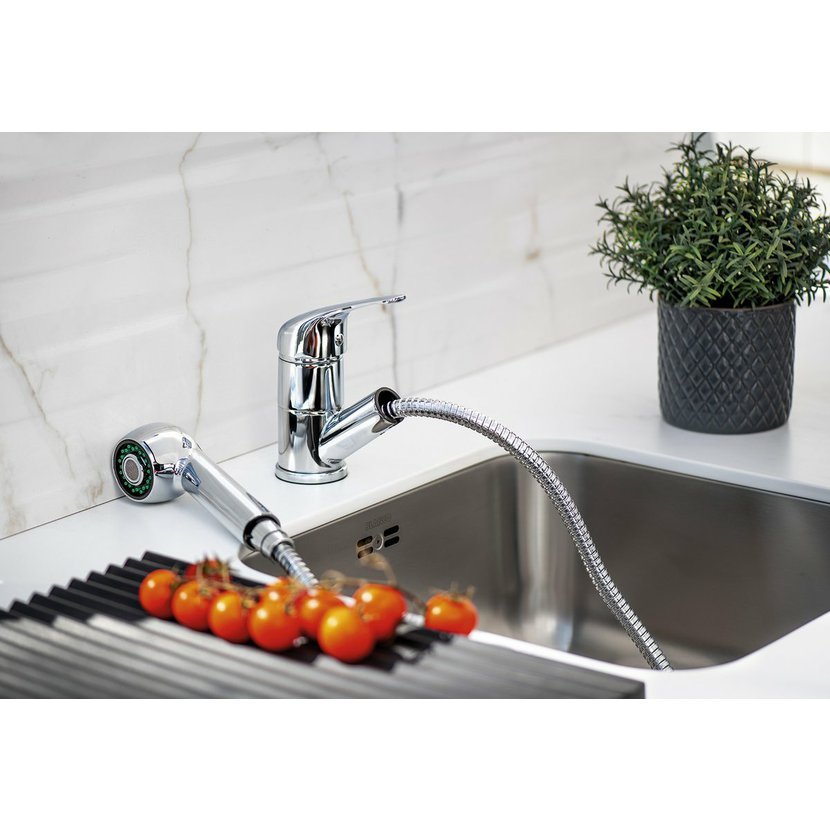 Parametry produktu  HOFFER stojánková dřezová baterie s výsuvnou sprškou, chrom