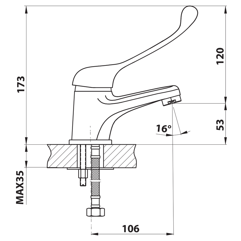 Parametry produktu HOFFER stojánková umyvadlová baterie, lékařská páka, chrom