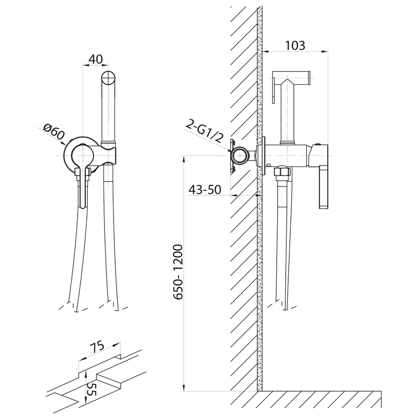 Parametry produktu  ICONIC podomítková bidetová baterie se Stop sprškou, kulatá, černá mat