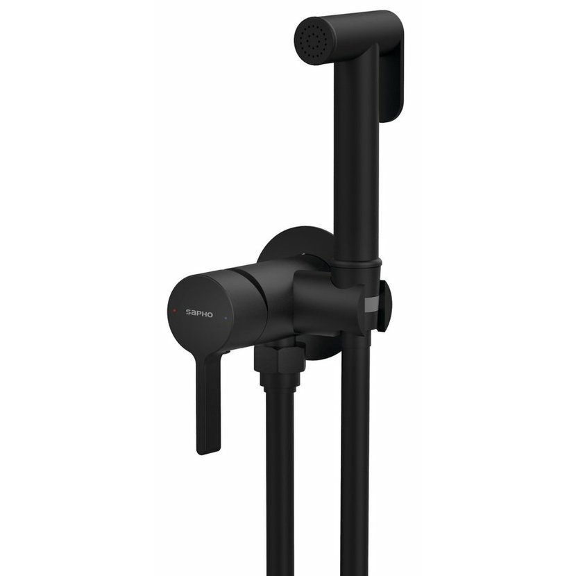 ICONIC podomítková bidetová baterie se Stop sprškou, kulatá, černá mat