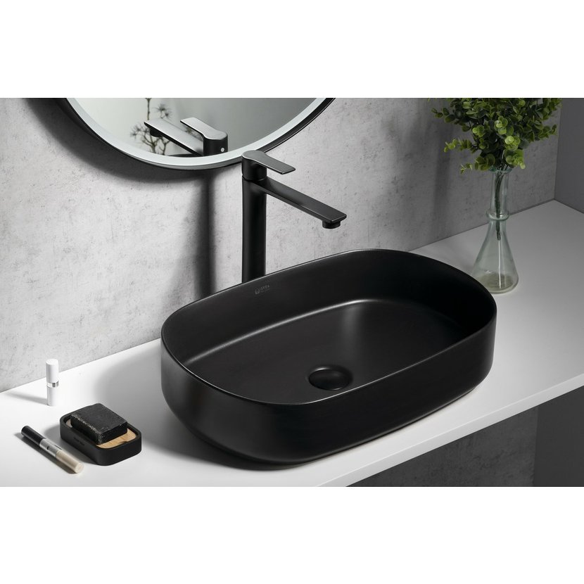 Parametry produktu  INFINITY OVAL keramické umyvadlo na desku, 55x36cm, černá mat