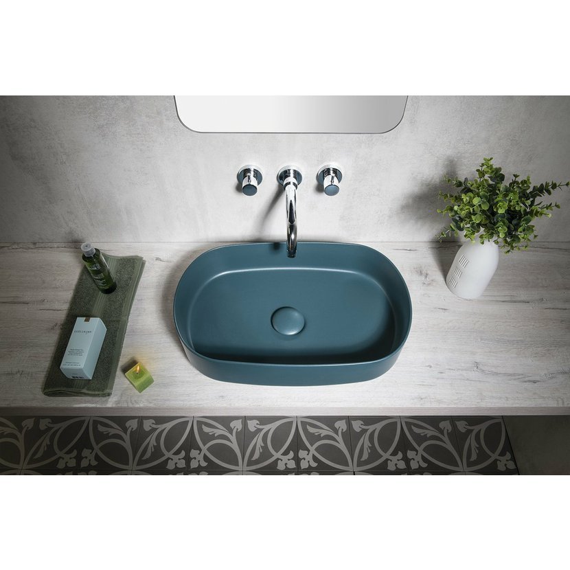 Parametry produktu  INFINITY OVAL keramické umyvadlo na desku, 55x36cm, zelená petrol