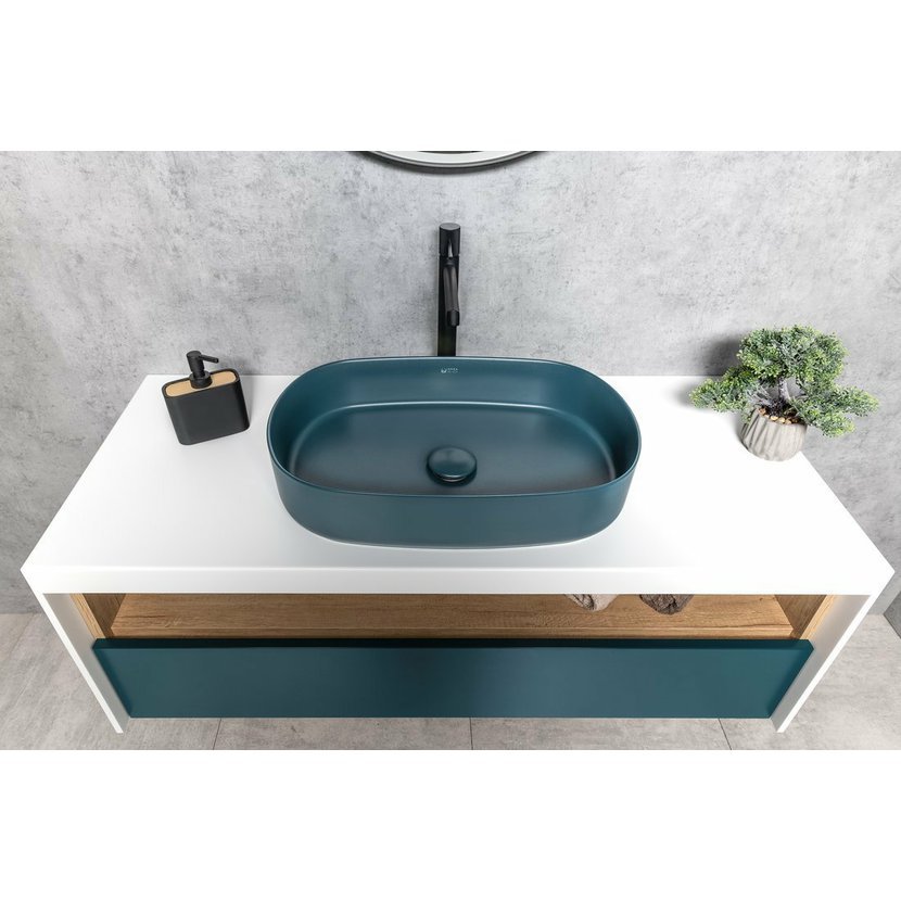 INFINITY OVAL keramické umyvadlo na desku, 55x36cm, zelená petrol