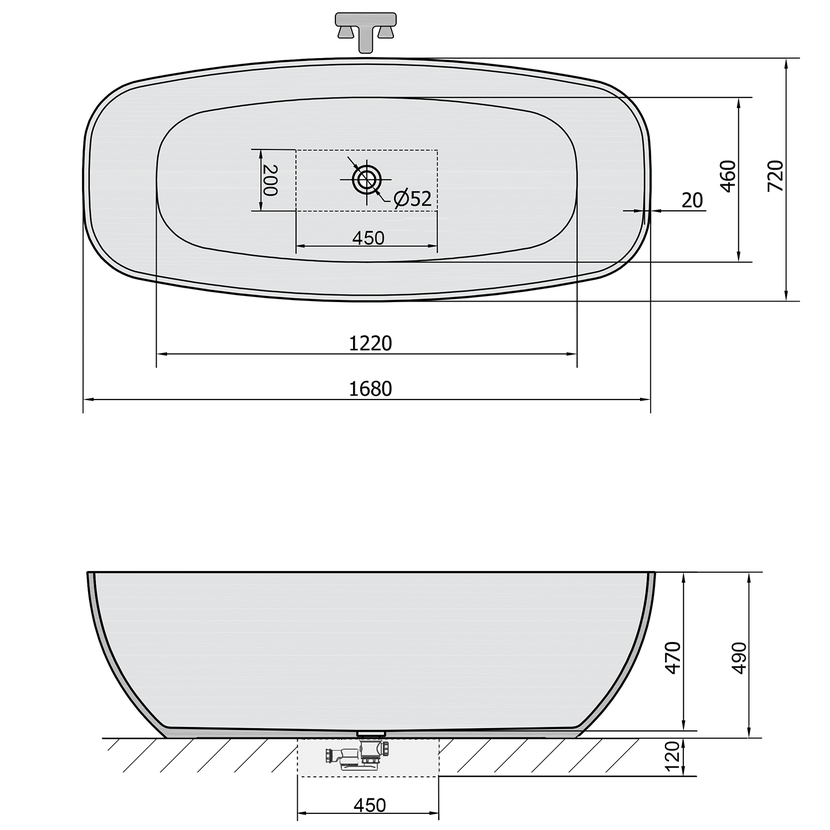 Parametry produktu  IPANEMA volně stojící vana litý mramor 168x72x49cm, bílá