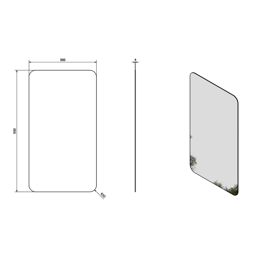 Parametry produktu  ISHAPE zrcadlo s broušenou hranou 50x90cm, zakulacené rohy, CU free