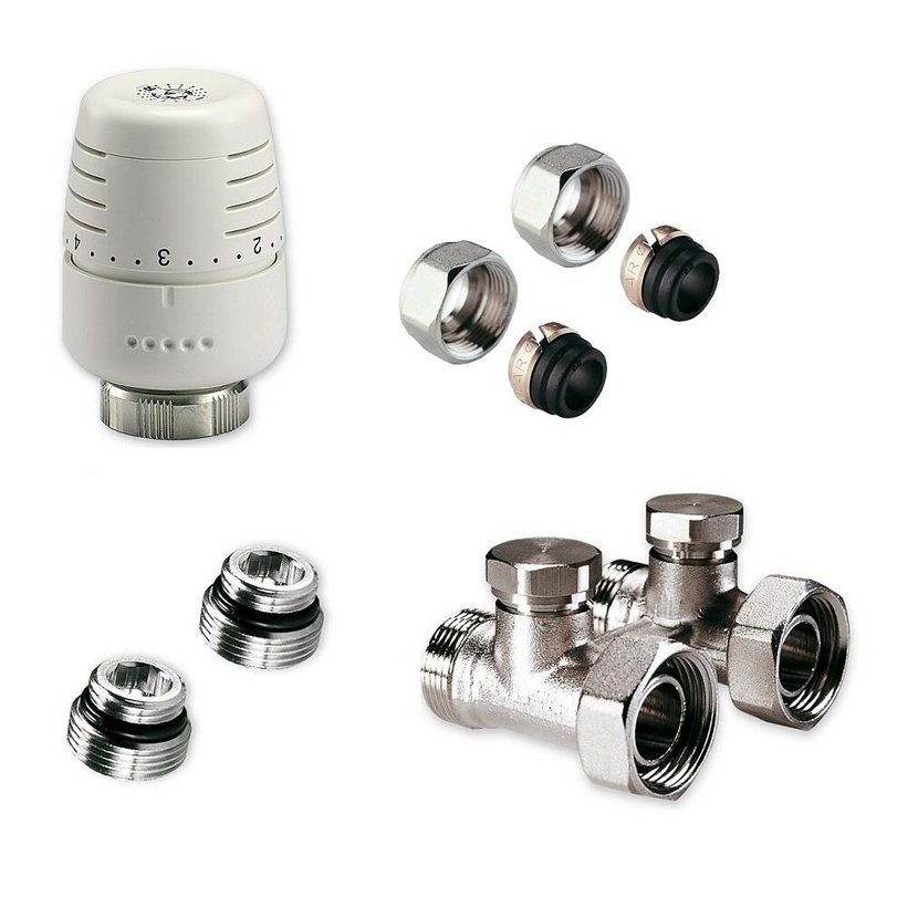 Poznámka: KIT se skládá z termostatické hlavice, regulační a uzavírací armatury VEKOLUXIVAR, adaptérů VEKOLUX a svěrných šroubení na měděné nebo vícevrstvé potrubí ALPEX, určeno pro tělesa se závitem ventilové vložky M 30 × 1,5, utahovací moment pro IVAR.TA 4420 = 20–30 Nm, pro IVAR.TR 4430 = 45–55 Nm.