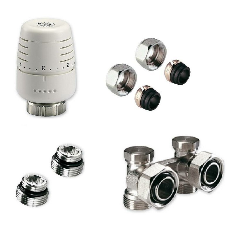 Poznámka: KIT se skládá z termostatické hlavice, regulační a uzavírací armatury VEKOLUXIVAR, adaptérů VEKOLUX a svěrných šroubení na měděné nebo vícevrstvé potrubí ALPEX, určeno pro tělesa se závitem ventilové vložky M 30 × 1,5, utahovací moment pro IVAR.TA 4420 = 20–30 Nm, pro IVAR.TR 4430 = 45–55 Nm.
