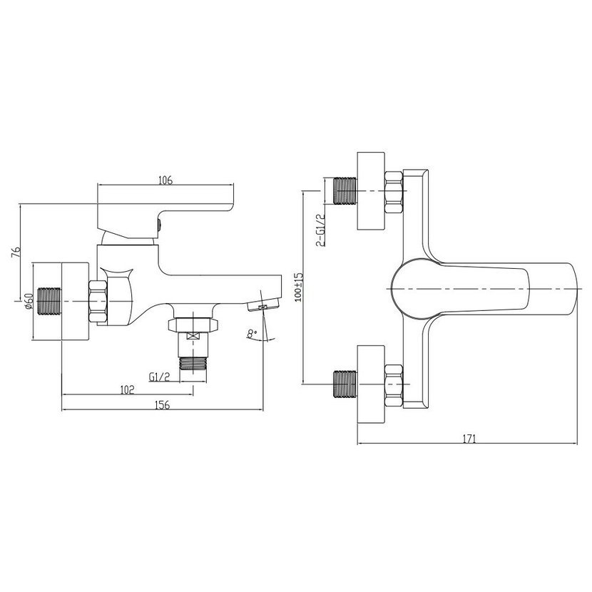 Vanová nástěnná baterie 100 mm bez příslušenství