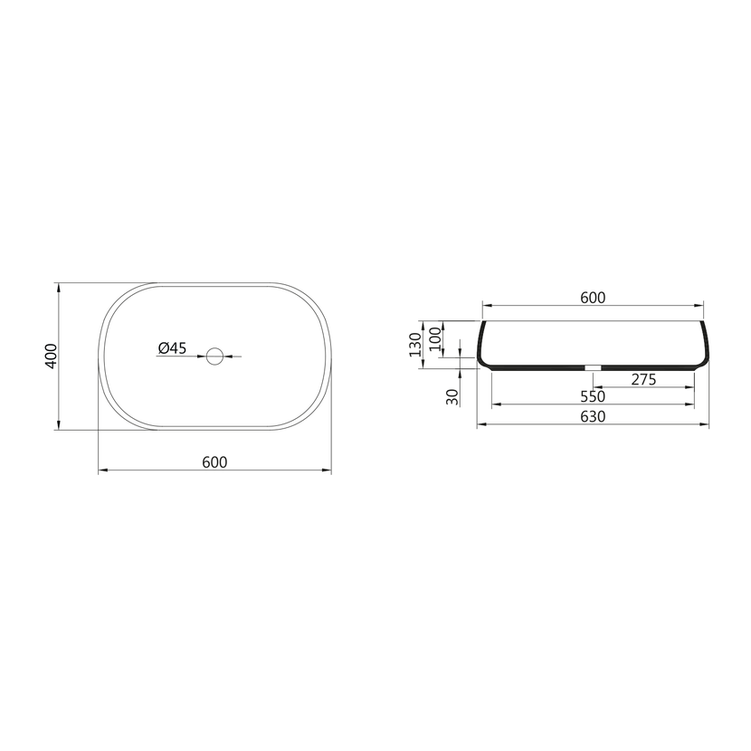 JUMPER keramické umyvadlo na desku, 60x40cm, bílá