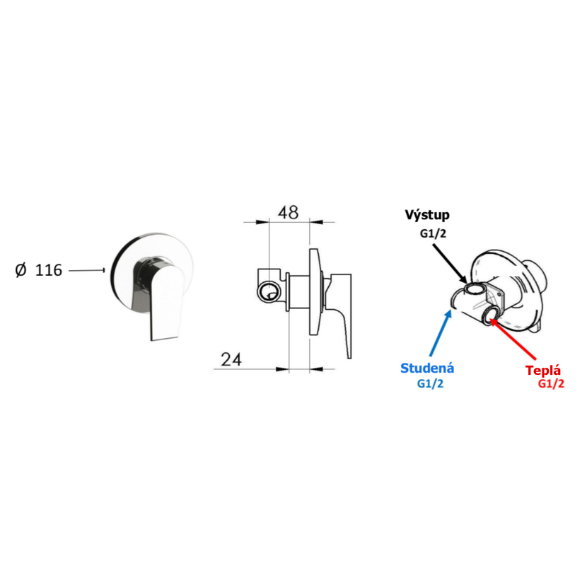 Parametry produktu KAI podomítková sprchová baterie, 1 výstup, černá mat