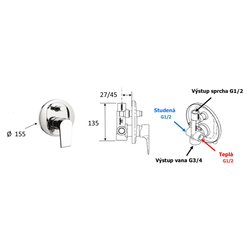 Parametry produktu KAI podomítková sprchová baterie, 2 výstupy, černá mat
