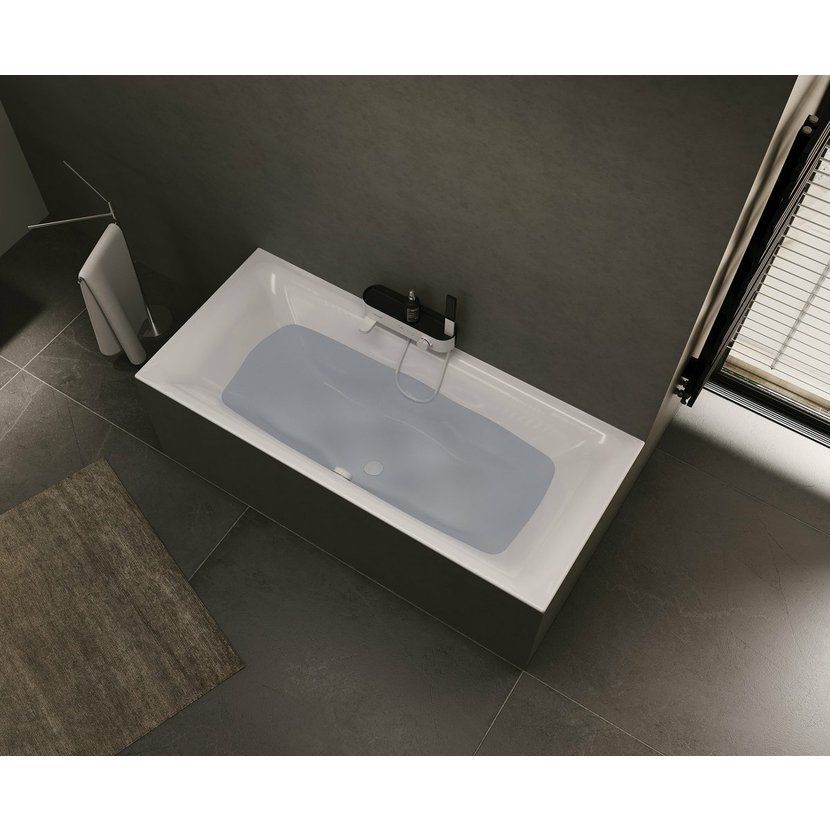 Vana s pohodlně tvarovanými stěnami pro opření zad na obou stranách a odtokem umístěným uprostřed.