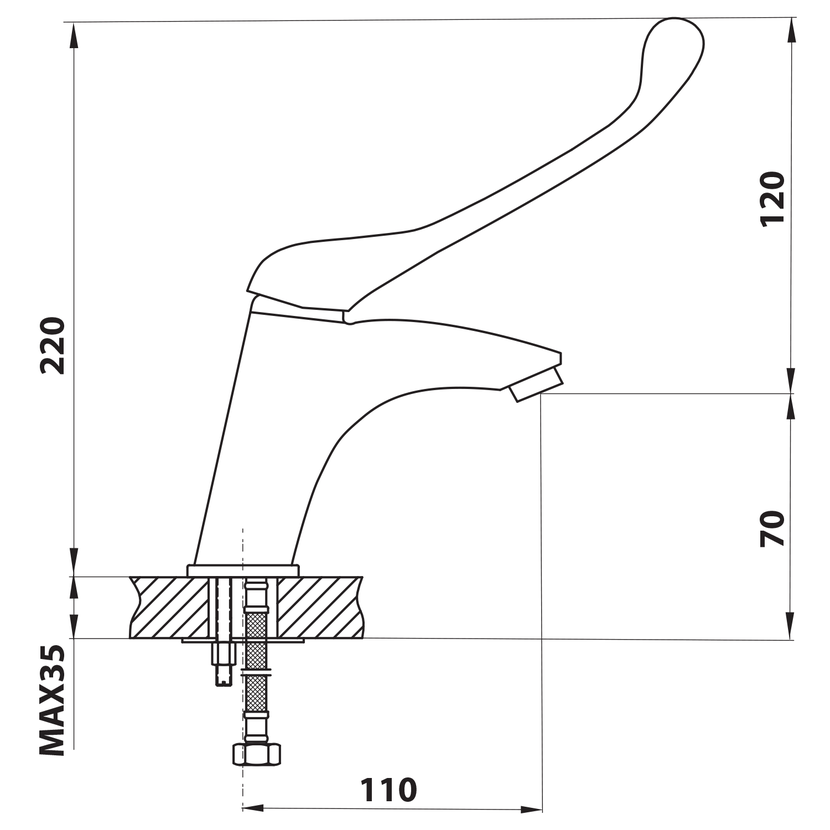 Parametry produktu KASIOPEA stojánková umyvadlová baterie, lékařská páka, chrom