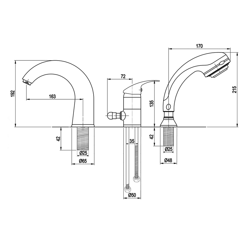 Parametry produktu KASIOPEA tříprvková baterie na okraj vany, chrom