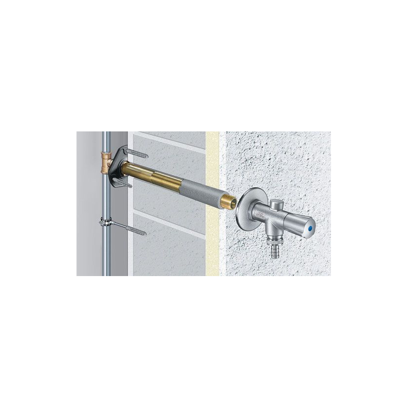 Stavební sada pro kompletní instalaci umožňuje montáž armatury již ve fázi hrubé stavby. Venkovní část se montuje po dokončení obvodové stěny. s obslužnou rukojetí s odnímatelným vrchním kohoutem volitelně s uzamykatelnou obslužnou rukojetí.