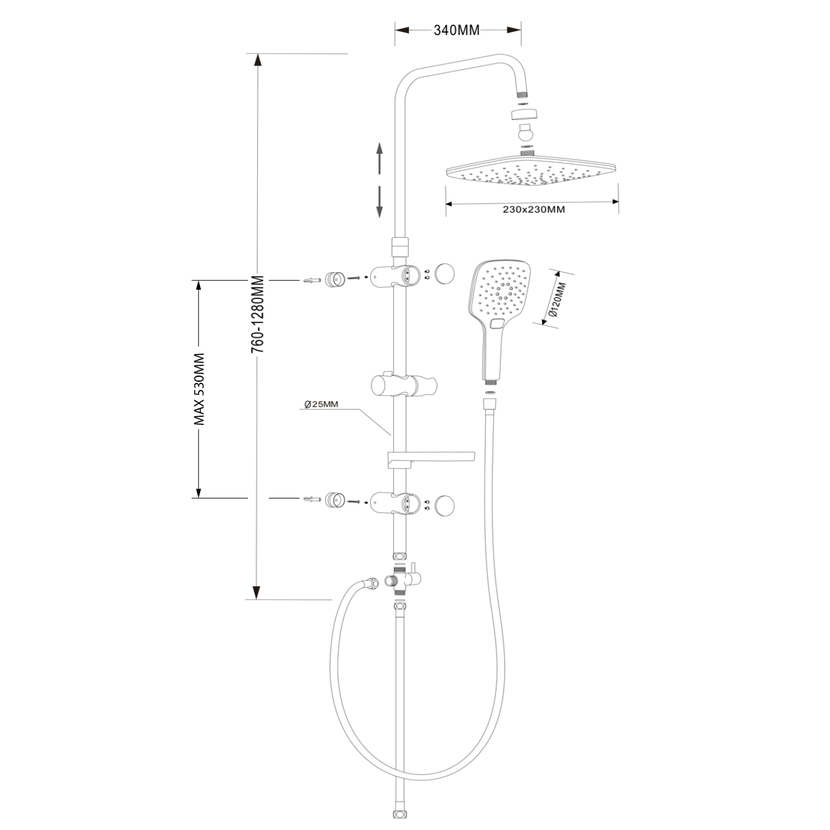 OstatníNastavitelná výška sloupu, AntiCalc, Nastavitelná rozteč uchycení