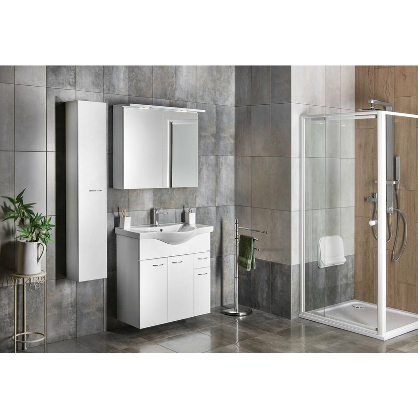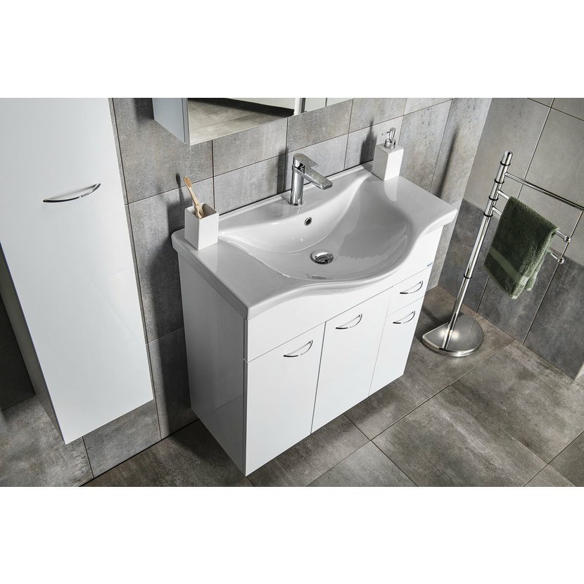 Inovovaná řada skříněk KERAMIA FRESH zdařile kombinuje osvědčenou kvalitu a klasický vzhled koupelnových skříněk se zaobleným keramickým umyvadlem ZARA. Skříňky jsou závěsné, ale některé z nich lze opatřit i podpěrnými nohami pro jednodušší instalaci. Série je vyráběna v bílém lesklém provedení nebo ve světlém dřevěném dekoru dub platin. Kolekci lze kombinovat s širokou nabídkou doplňkových skříněk, zrcadel a galerek. Ceny i rozměry jsou uvedeny bez nožiček.