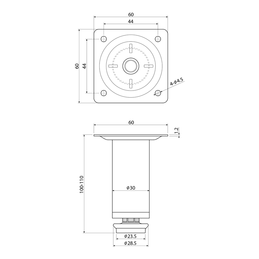 Parametry produktu  KERAMIA FRESH výškově stavitelná nožička, výška 100-110mm, chrom
