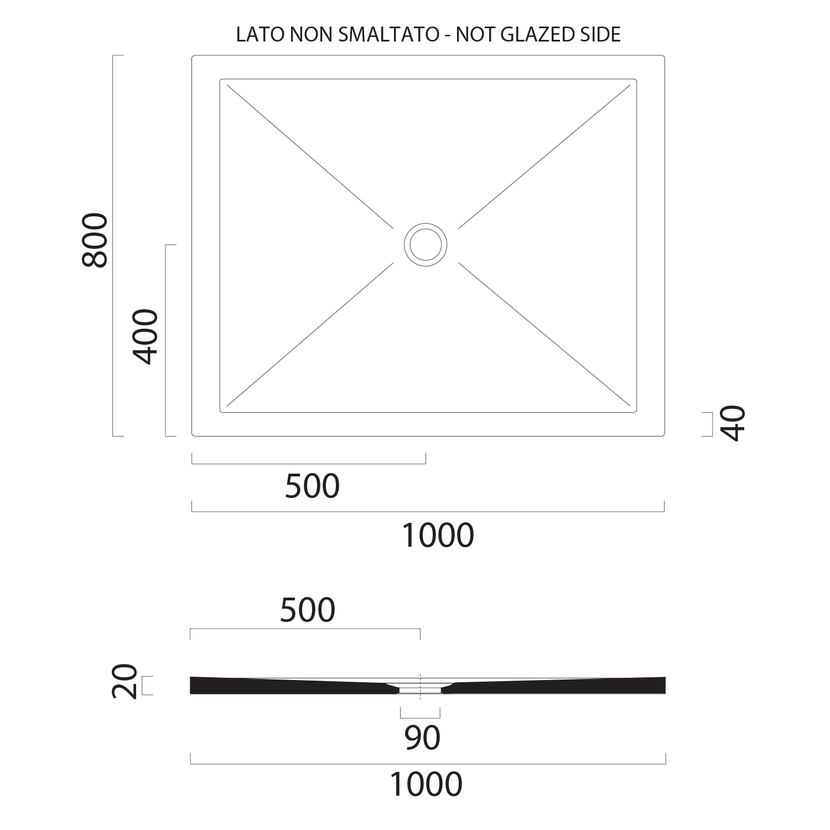 Boky vaniček, které jsou neglazované (určené k zazdění do zdi, či pod obklad), jsou na technickém výkresu označeny "not glazed side".