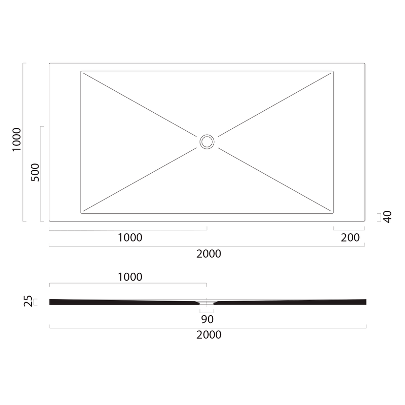 Parametry produktu Keramická sprchová vanička, obdélník 200x100x2cm, bílá mat