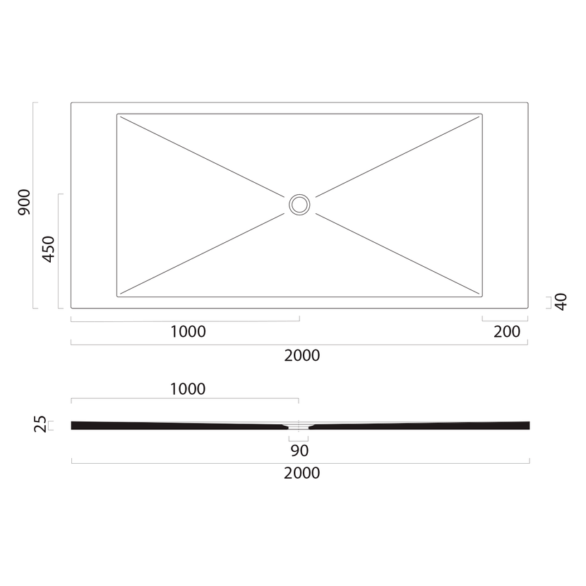 Parametry produktu Keramická sprchová vanička, obdélník 200x90x2cm, bílá mat