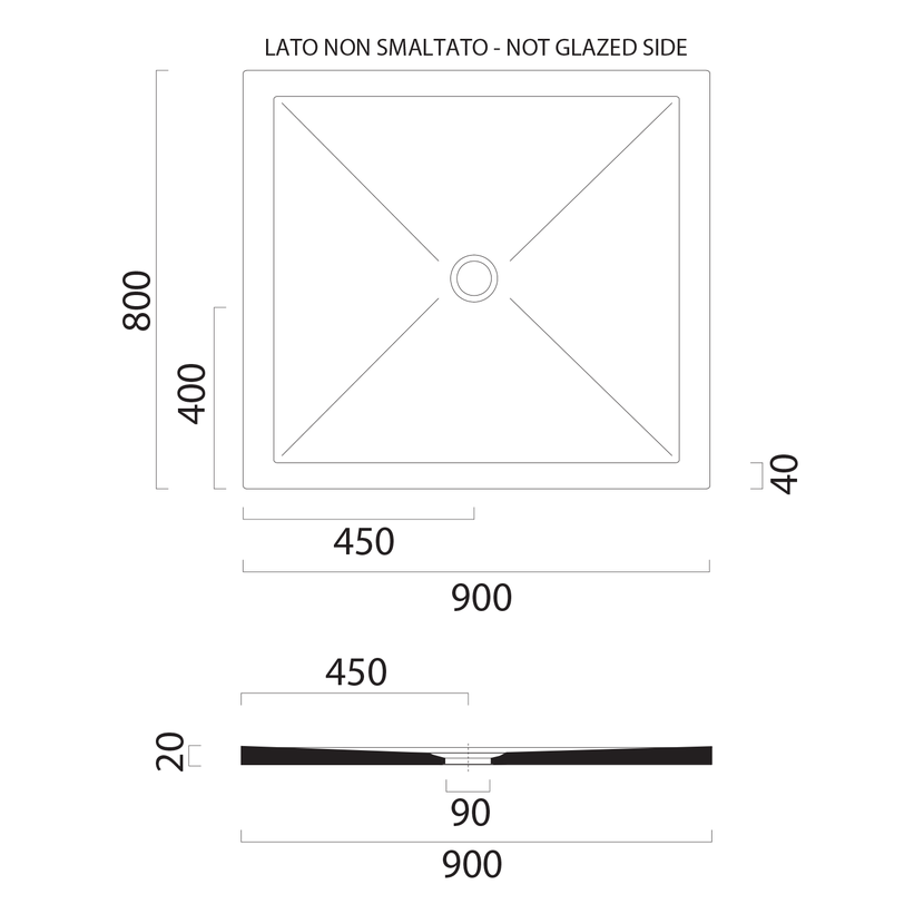 Parametry produktu Keramická sprchová vanička, obdélník 90x80x2cm, bílá mat