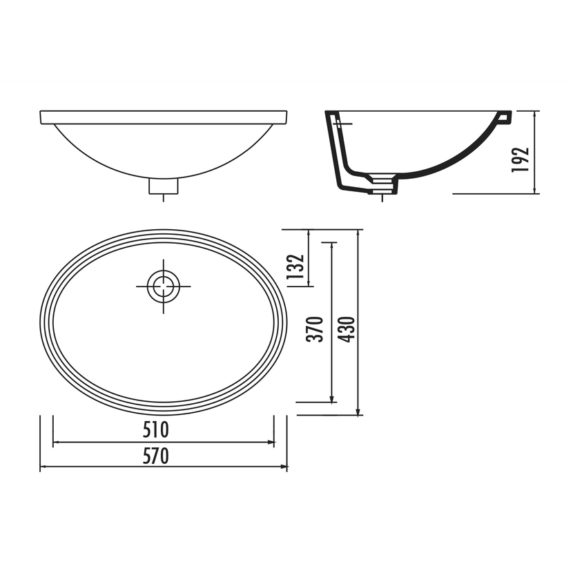 Parametry produktu  Keramické umyvadlo pod desku, 57x43cm, bílá